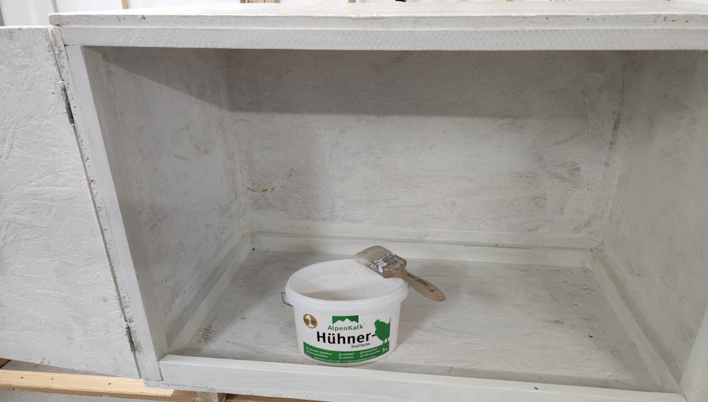 AlpenKalk Premium Hühnerstallfarbe für ein hygienisches Stallklima durch die feuchtigkeitsregulierenden Eigenschaften des Kalks und die besondere Rezeptur. Fördert ein gesundes Mikroklima, das das Wohlbefinden der Hühner steigert und beugt Schimmelbildung vor.