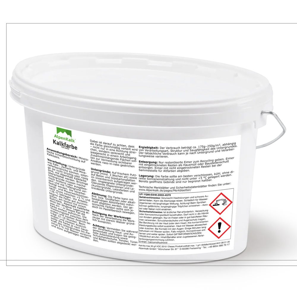 Premium Kalkfarbe von AlpenKalk für gesundes Wohnen. Dieser Premium Kalkfarbe aus Kalk ist ohne Konservierungsstoffe, frei von synthetische Bindemittel, lösungsmittel- und weichmacherfrei. Frei von lästigen Gerüchen usw.