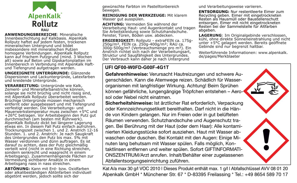 Premium Roll- & Streichputz von AlpenKalk für gesundes Wohnen. Dieser Premium Roll- & Streichputz aus Kalk ist ohne Konservierungsstoffe, frei von synthetische Bindemittel, lösungsmittel- und weichmacherfrei. Frei von lästigen Gerüchen usw.